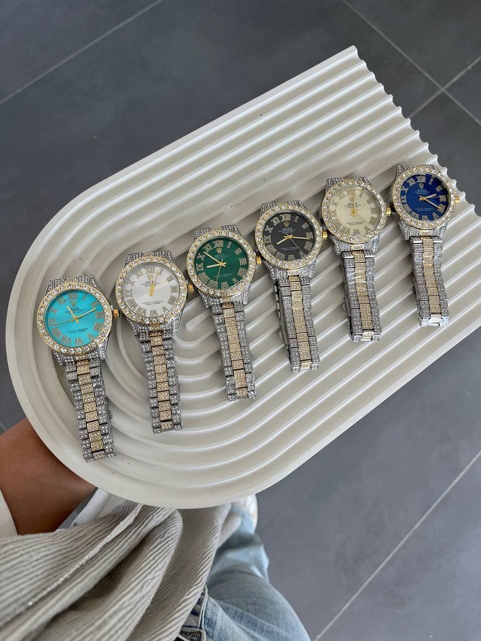 ساعت رولکس گرد فول نگین صفحه یونانی ,طرح مجلسی قاب نگین دار,موتور کوارتز قفل دستبندی ,ضدآب رنگ ثابت۹۹۵٬۰۰۰ 30%