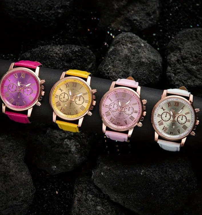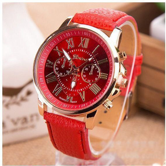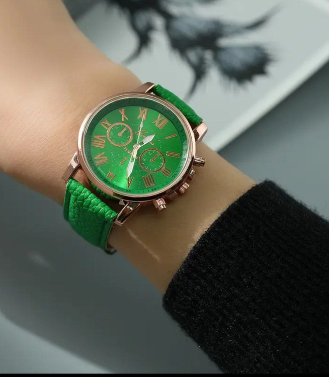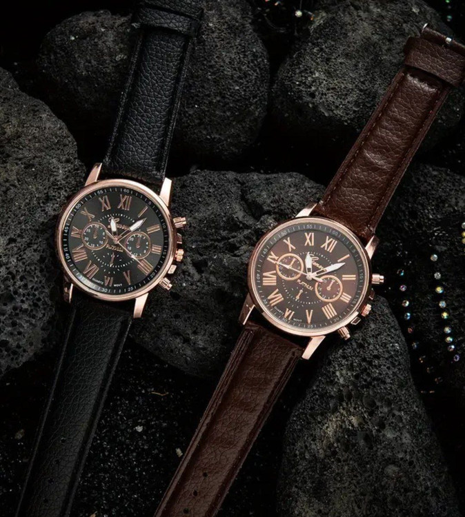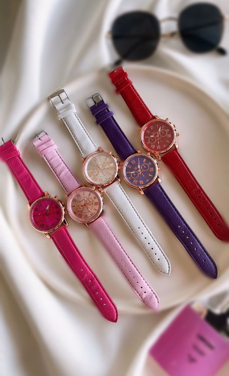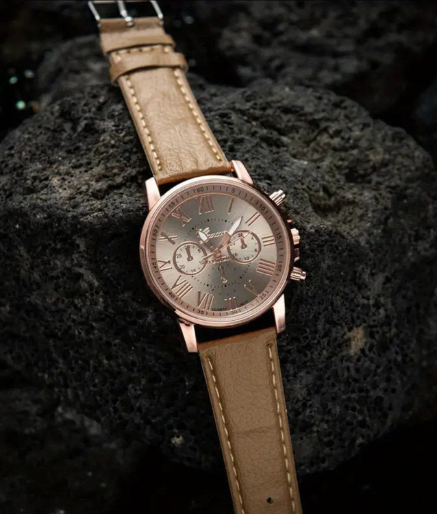 ساعت مچی زنانه و دخترانه صفحه یونانی طرح سه موتور فعال بند چرمی