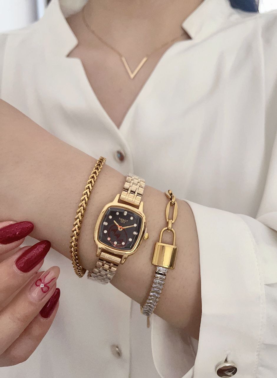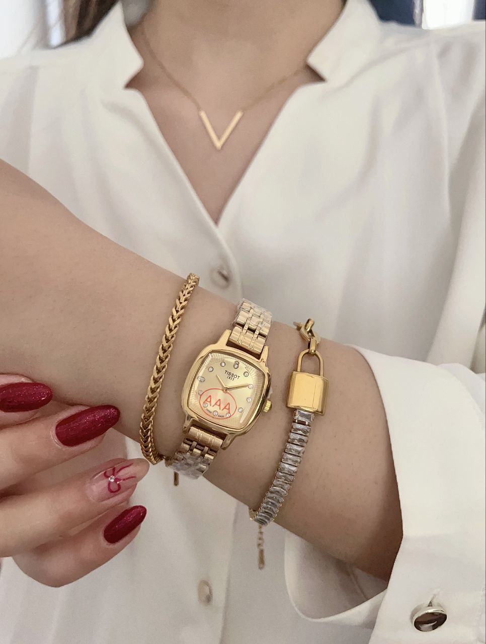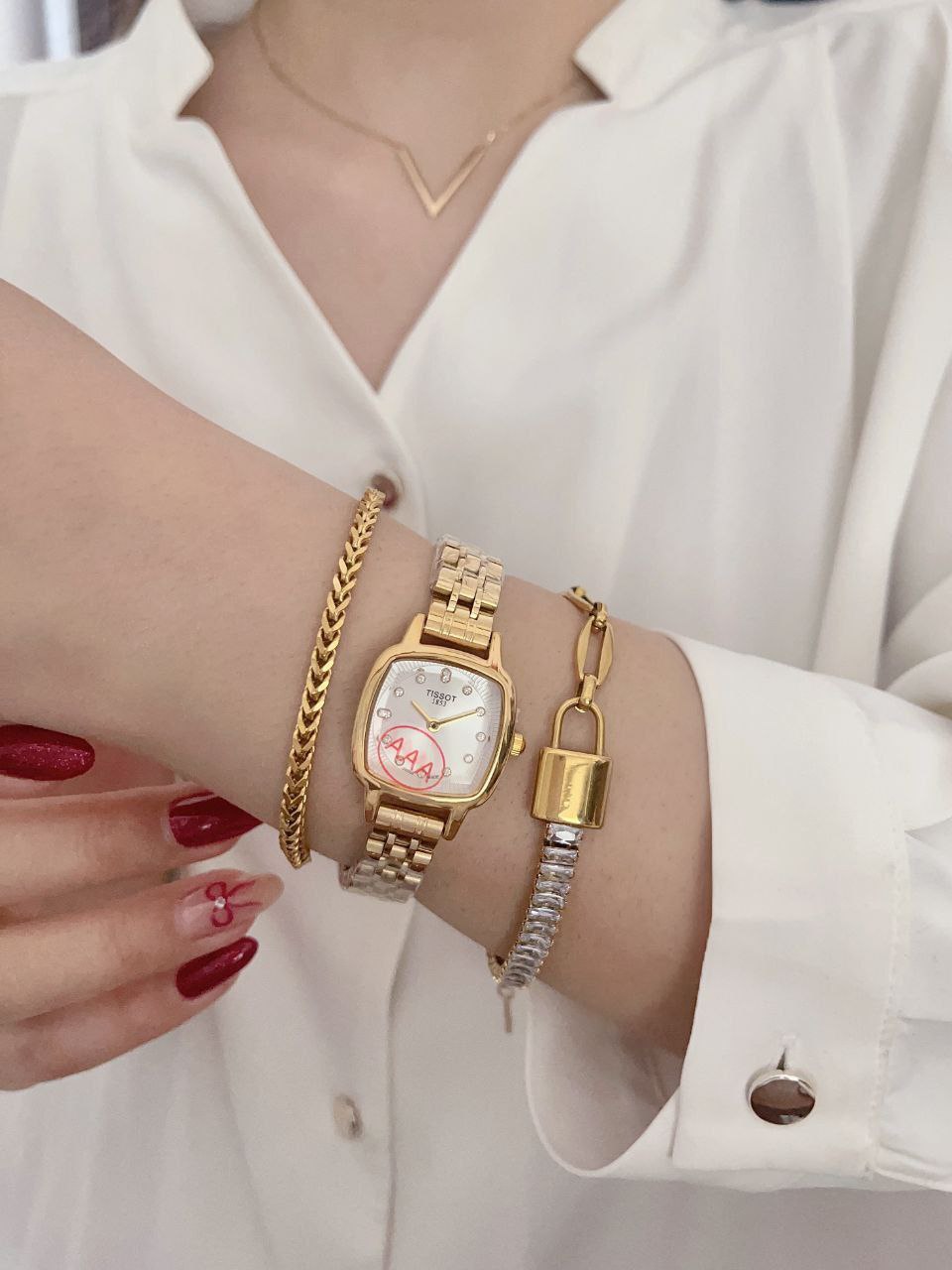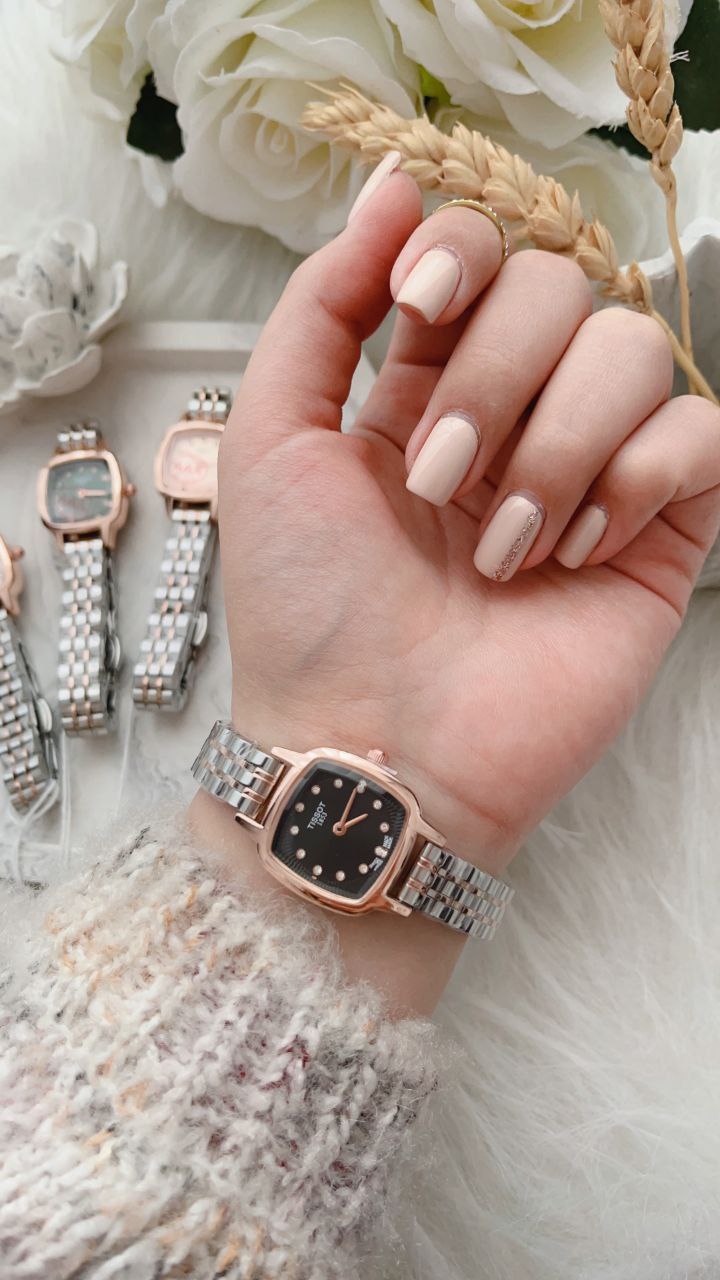 ساعت زنانه برند TISSOT تیسوت1853 استیل اصلی موتور به ضمانت قاب بدنه فول استیل رنگ ثابت شیشه نشکن آنتی رفلکس ضد خش روز شمار دار