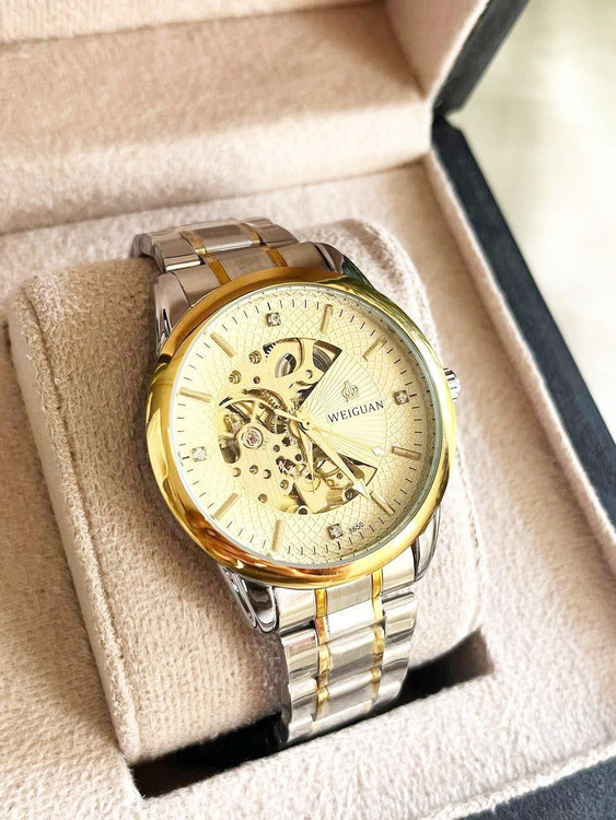 ساعت مچی مردانه تمام اتوماتیک برند WEIGUAN کیفیت عالی پشت شیشه و قلب باز استیل رنگ ثابت