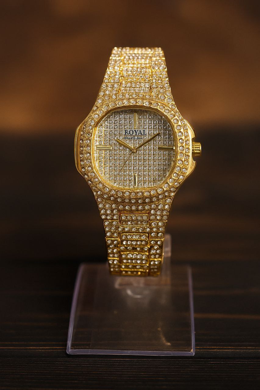 ساعت مچی زنانه برند ROYAL فول نگین هم رده پتک فیلیپ موتور شرکتی کوارتز سایز استاندارد رنگ ثابت کیفیت عالی مدل جور جدیدترین مدل روز