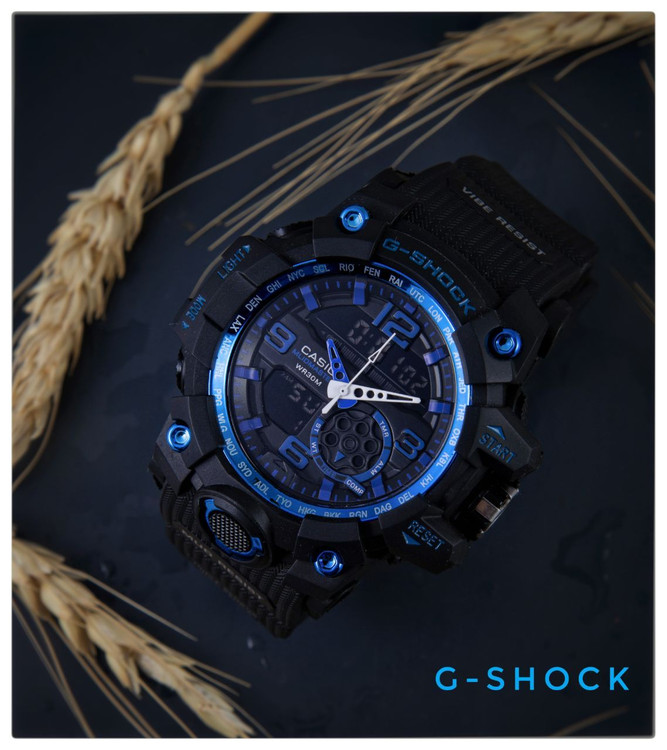 ساعت مردانه کاسیو جی شاک ساعتی برای استایل حرفهای و پرانرژی دو زمانه با کرنومتر آلارم و نمایش تاریخ موتور شرکتی با کیفیت درجه یک ضدآب و رنگ ثابت مناسب استفاده روزمره ضدحساسیت با شیشه ضد خش