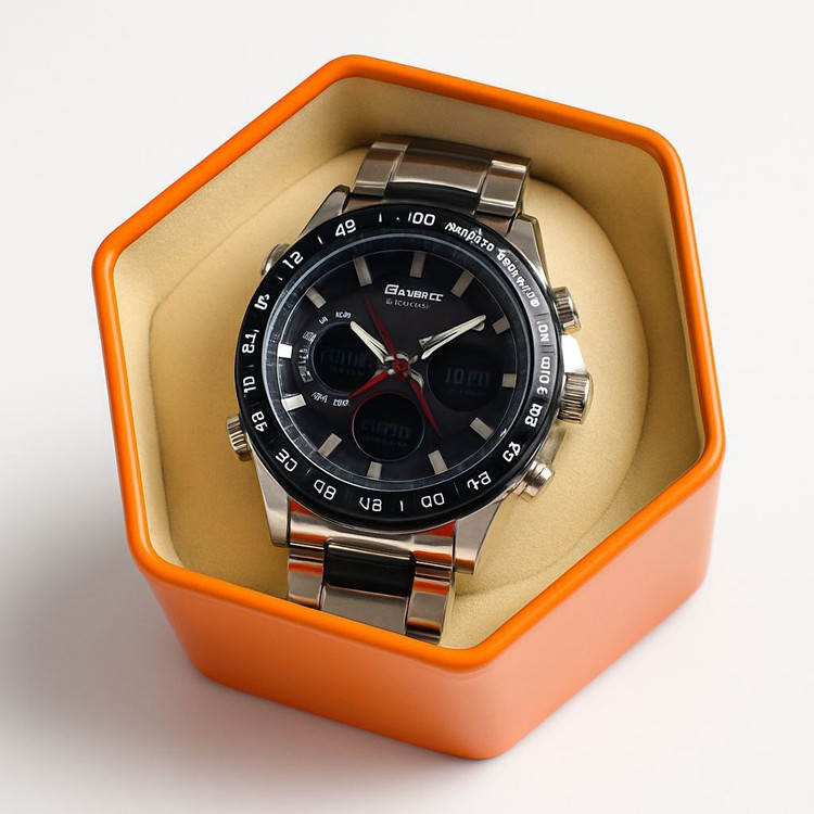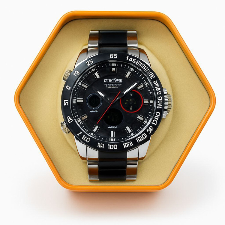 ساعت مچی مردانه برند جوفاکس 2زمانه قوطی دار تاریخ و روز شمار ضد آب۱۰۰٪ کرنومتر+الارم،دو زمانه رنگ‌بندی کامل،رنگ ثابت