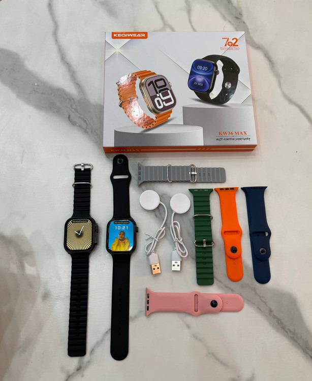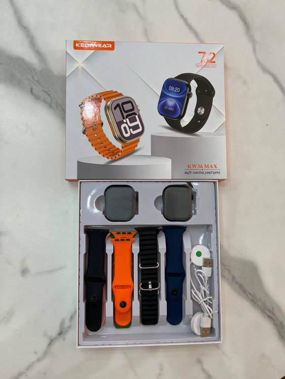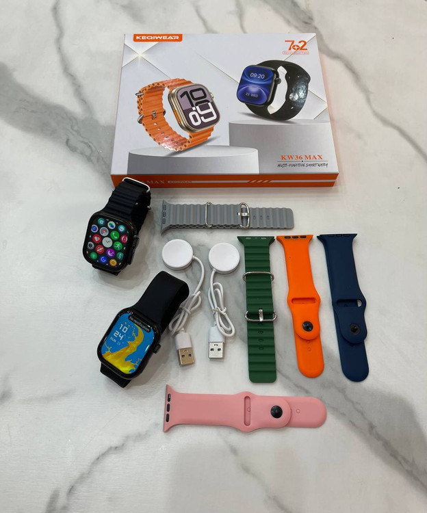 پک ساعت هوشمند اسمارت واچKW36 MAX 2 دارای دو ساعت هوشمند سایز 49 الترا سایز 45 و2 عدد شارژر وایرلس فول صفحه 1295تومان