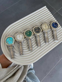 ساعت رولکس گرد فول نگین صفحه یونانی ,طرح مجلسی قاب نگین دار,موتور کوارتز قفل دستبندی ,ضدآب رنگ ثاب